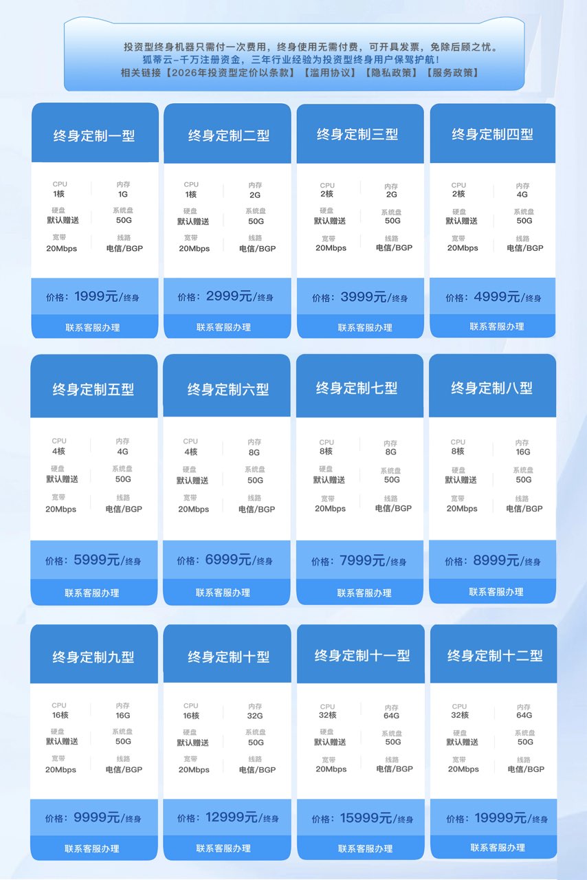 2026年1月1号起,投资型机器将不再活动区进行投放,为保证其他用户投资型的稳定性,不再与其他平台价格斗争,今年起所有价格调整不再低价销售,不与其他同行云投资型机器价格战从而影响其他正常投资型用户,以下为调整价格,如需购买,请联系商务QQ:2088574593